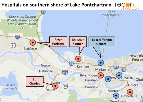 Interestingly, Ochsner has been in discussions vs. a few other entities to acquire East Jefferson for a year, but appears most recently to have walked away from further talks. The East Jefferson sales process has been marred by controversy – but that does not seem to have stopped East Jefferson from expanding services (such as a low acuity track in the ER to speed care or opening a new oncology wing). By solidifying control over referral volume from the west (including taking control of the 59 bed St. Charles hospital to the southwest earlier this year), Ochsner has bolstered the position of Kenner. Any other buyer for East Jefferson than Ochsner will now also be buying an uphill battle with Ochsner for referrals from the west. Ochsner will have more leverage should it return to the negotiating table with East Jefferson.